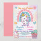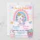 Pink Cute Unicorn dinosaurs rainbow Birthday party Invitation