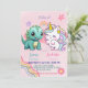 Pink Cute Unicorn dinosaurs rainbow Birthday party Invitation