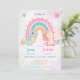 Pink Cute Unicorn dinosaurs rainbow Birthday party Invitation