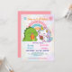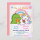 Pink Cute Unicorn dinosaurs rainbow Birthday party Invitation