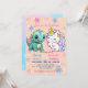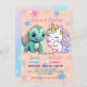 Pink Cute Unicorn dinosaurs rainbow Birthday party Invitation