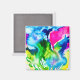 Beautiful original art painting of colourful abstract pink and green cyclamen flower art. Bright vibrant colours. Watercolor fine art.