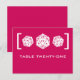 This D20 Dice Gamer Wedding Table Number Postcard in magenta is perfect for the nerdy couple who fell in love over a shared interest in role playing games and are planning a similarly themed wedding. This offbeat design features a simple and minimalist trio of twenty-sided die. Easy to customise, simply add the appropriate table number(s) in the text field provided. Click "Customise It" to find more personalisation options.