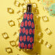 Pink dahlia flower on blue bottle cooler