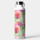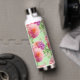 The bottle looks even better in real life. The ice cubes I put in lasts all day! I have my bottle with me all the time. It's summer and having something cold to drink feels amazing. With this bottle I always have something super cold. I have only tried the hot drink once and it lasted a long time as well. The color blue is a navy blue and the white printed on it is vibrant. It printed perfectly. I love my personalized smile water bottle.