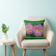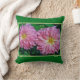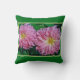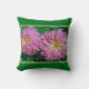 ADD A FLORAL ACCENT TO YOUR SUNROOM WITH THIS THROW PILLOW FEATURING TWO LARGE PINK DAHLIAS. SHOWN WITH GREEN BACKGROUND (CUSTOMIZABLE).