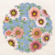 Pink Daisies on Blue Floral Pattern Paper Coaster