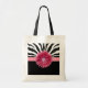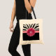 Natural and black 100% cotton twill budget tote bag with an image of a black and white zebra print on the top half and solid black on the bottom half, divided by a pink ribbon topped with a whimsical pink daisy. See the entire Birthday Tote Bag collection in the PARTY FAVORS section.