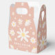 Favour Boxes in boho style with daisy floral artwork and pink colour.