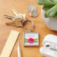 Pink Daisy Green Polka Dot Custom Name Keychain