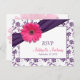 Pink Daisy Purple Damask Wedding RSVP Postcard