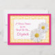 You can customise the text on this fuchsia pink or magenta pink, white and yellow shasta daisy recipe theme bridal shower invitation. This invitation is a combination of chic and trendy and traditional with the daisies and damask swirl and the bright colours make it a good choice for weddings in the spring and summer. It is customised to simulate a recipe card and works very well for a recipe themed wedding shower. Matching recipe card enclosures are shown below. This would work well for any special occasion with a recipe theme. The lines and "recipe card" text can be removed from this invitation as well using customise it. To change the text, use the personalise options. For more extensive changes to the invitation, including changes to the font, font colour, font size, and/or text placement, or to remove the lines and text from the back, use the customise it option.