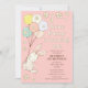 Sweet bunny themed first birthday invitation for a baby girl featuring a white bunny , some balloons and daisies. This some bunny is turning one first birthday invitation is ideal for someone looking for a modern style invitation.
