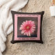 Modern floral pillow with Scripture Verse; Pink Gerbera Daisy framed in pale pink on a dark chocolate brown pillow. The following bible verse (2 Timothy 4:17) is written in chocolate brown on the pink frame around the flower: But the Lord stood with me and gave me strength. Back of pillow is thin pinstripes in coordinating pink and brown.