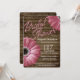 Festive and colourful daisy wood bridal shower invitation with dark rustic barn wood and deep pink Gerbera daisy. Hand script style text adds just a bit of whimsy to this absolutely beautiful and fun bridal shower invitation.