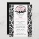 Start off your event off right with our Bridal shower invitation featuring a beautiful oval frame with birds on branches with White & black damask with a pink trim. Trendy white & black colour combination. Just customise our invitation with your wedding information and you're all set to go
