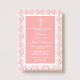 Pink Damask Cross Baptism, Christening, Confirmation Or First Holy Communion Invitations.