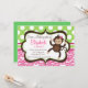 Pink Damask Mod Monkey Girl Birthday Party Invite