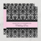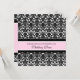 Elegant wedding vow renewal invitations in light pink, black and white floral damask pattern with fully customisable text to include your vow renewal ceremony details.