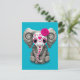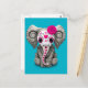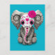 Pink Day of the Dead Sugar Skull Baby Elephant Postcard