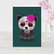 Pink Day of the Dead Sugar Skull Panda on Teal Card
