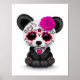 Pink Day of the Dead Sugar Skull Panda on White Poster
