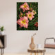 This poster features a photograph of beautiful pink daylilies with yellow centres by Jayne Wilson. The photograph has been processed with the watercolor filter in Photoshop Elements, giving it a painterly feel.