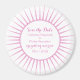 Sophisticated and elegant Deco Retro Save the Date Magnet in magenta featuring a circular art deco ornamental sunburst design. Easy to customise, simply add your wedding details in the text fields provided. Click "Customise It" to find more personalisation options.
