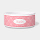 Beautiful pink vintage damask pattern background with a personalizable text area for the name of the pet. The font is a lovely script font in pink colour.