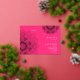 Beautiful delicate mandala wedding invitation with golden foil - Bold pink