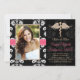 Add your photo or favourite picture to these elegant and formal black and white floral damask dental school graduation announcements and invitations with a gold single snake caduceus and fuchsia hot pink stitched ribbon look design for the graduating dentist. Customise it to say whatever you want on the back and front of these dentistry graduate graduation announcements and invitations. Artwork © Chrissy H. Studios, LLC. All rights Reserved.