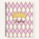 Pink Diamond Check Personalised Name Princess Notebook