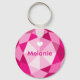 Fuchsia pink diamond gem stone round button keychain. Add your own name or monogram name initial letters. Custom precious gemstone key chain for with cute heart. Cute Birthday gift girls. Also nice as classy wedding party favour for guests, bridesmaids, friends etc. Pretty bling cristal facet jewel design aka pink diamant, ruby, spinel, sapphire or tourmaline.