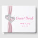Elegant diamond hearts with a pink ribbon decorate this guestbook. Wedding guest books are fun for both the couple and their celebrants. Invite attendees to leave you well-wishes at your reception, and you're guaranteed to have a keepsake to look back on for years to come. Plus, your guests will get to leave their mark on your event, not to mention put in writing whatever they didn't have a chance to express in person on the big day. Personalise the book by changing the text in the fields provided. You can change font style, size, and colour.