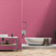 This elegant wallpaper features white diamond lattice pattern on a pink background. A perfect accent for your home decor.