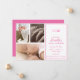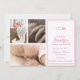 This baby design is a precious way to welcome and announce your new bundle of joy! This modern retro design has a bright white background with a pink border to the right to set off your message. There are three white frames for photos of your baby. At the top on the right there is a cute diaper pin graphic and your baby's birth information just below.