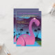 Have an awesome and truly memorable party starting with this "prehistoric" invitation. It features a pink dinosaur wadding in a swamp surrounded by exotic vegetation. Geared towards girl paleontologist. The card is easy to customise with your wording, font, font colour and choice of six paper types.