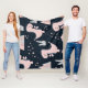 Pink dinosaurs, dark background, cute fleece blanket