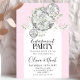 This chic engagement party invitation features shimmering disco balls, soft white florals, and twinkling printed lights—perfect for a glam night of dancing and celebration.