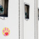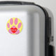 Cartoon dog paw print in pink and red heart on top. Custom name magnets.