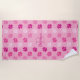 This beach towel has a pink dog paw prints pattern and in the middle there is space for a monogram and for a name.