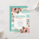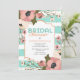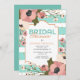 A floral bridal shower invitation with pink dogwood flowers against a teal and white stripe background. <br/><br/>The card is easy to customise with your wording, font, font colour, paper shape options and choice of six paper types.<br/><br/>Not exactly what you're looking for? All our products can be custom designed to meet your needs at no extra charge.<br/><br/>Simply contact us at heartfelthelper@gmail.com<br/><br/>Coordinating products available: Just ask us!