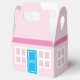 A custom party favour box with the event name and thank you message. House design for pink doll theme birthday inspired by the Margot Robbie Movie.
