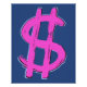 The symbol of money, currency and cash, the dollar sign, combines the letter S with two vertical lines. The Pink Dollar Sign graphic is a hand painted dollar sign with visible brush strokes giving the symbol that 60s pop art look. The pink dollar sign has a shadow in a shade of blue. Fill your bank account with lots of dough, bread or moolah and choose the Pink Dollar Sign design.