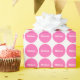 A wrapping paper designed with a pink dot pattern on a white background and name. Customise the wrapping paper with your special name or text among other options.