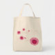 Pink Dotted Flowers and Happy Birds Cute Tote Bag
