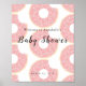 This cute baby shower welcome sign poster features a white background with pink doughnuts. Personalise for your needs. You can find more matching products at my store.
