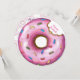Happy Birthday! Pink Doughnut Birthday Party Round Invitation created by ITD Holidays feature our original artwork of a pink doughnut with sprinkles and a bit taken out of it with the customisable words, You're Invited inside the bite on white. On the back is a light doughnut pattern behind your personalised information for a sweet treat party. Have a sweet birthday party! Custom designs available, so please message us with any questions or requests.