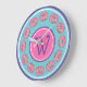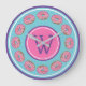 Wall clock features an original illustration of a pink frosted doughnut with sprinkles, on a teal blue background. Just personalise with your initial for a fun bedroom or bathroom accessory.