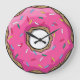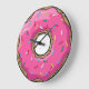 ClipArt graphic of pink strawberry glazed doughnut with blue, yellow, red, green and white sugar sprinkles.